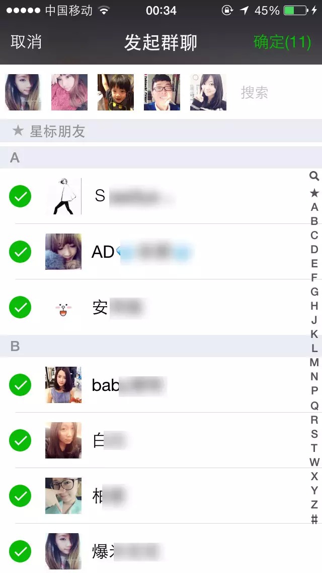 第二步,勾选好友,愿意选多少都行,小编我选了好多,然后点确定