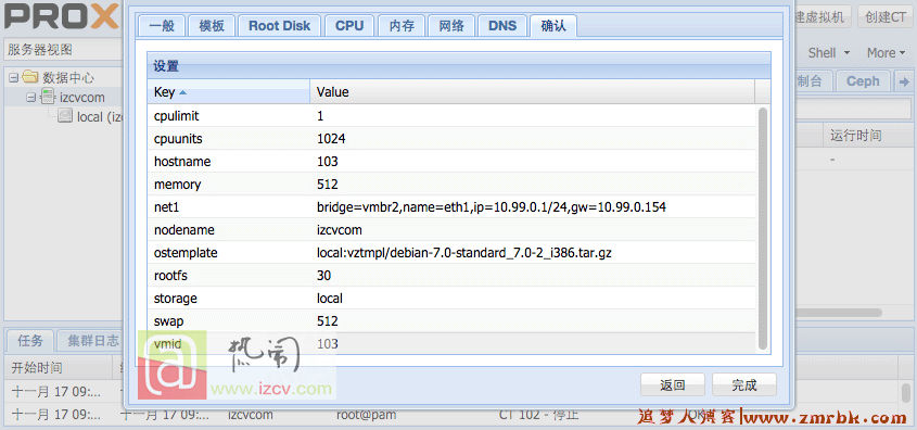 前几天折腾2欧的时候看到后台有Proxmox,就试了下,因为母鸡cpu的限制,不能虚拟kvm的小鸡,只能折腾openvz的了。