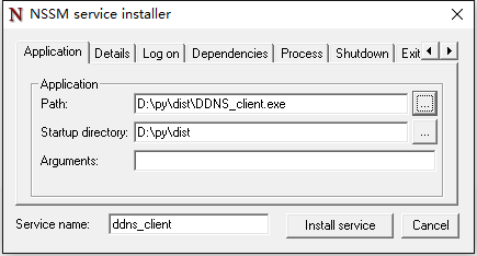 E: nssm install DDNS_client <这个名称你可以自己定义>